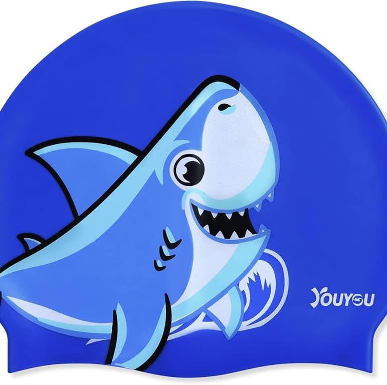Generic - طاقية سباحة مصنوعة من السيليكون ومقاومة للماء ومتوافقة مع الشعر الطويل والقصير، طاقية بتصميم مرح يناسب الأطفال