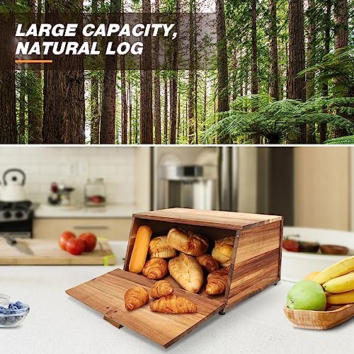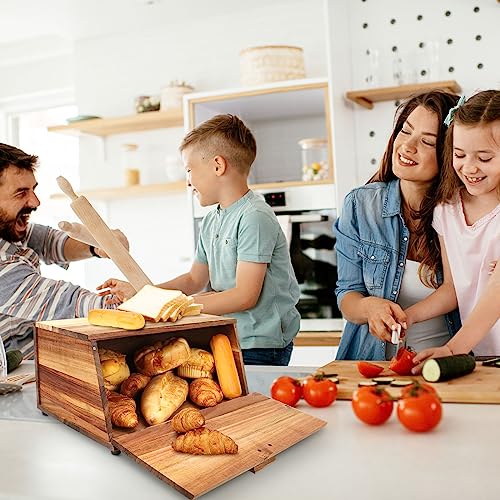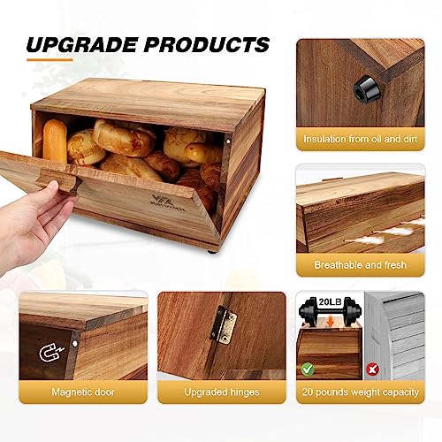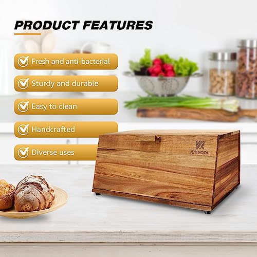 KIKVOOL - صندوق خبز خشبي لطاولة المطبخ، حاوية ذات سعة كبيرة لا تحتاج إلى تجميع، صندوق تخزين لأنماط طاولة المطبخ المختلفة من كيكفول