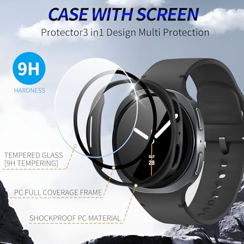 Kimiyaki - جراب واقي للشاشة لساعة سامسونج جالاكسي 8 مقاس 44 ملم بتغطية كاملة من البولي كربونات الصلب، ملحقات الحماية الشاملة لساعة سامسونج 8 44 ملم من الزجاج المقوى المدمج من كيمياكي