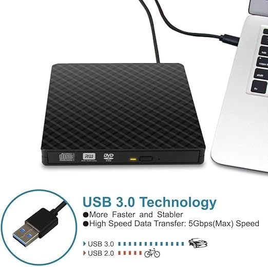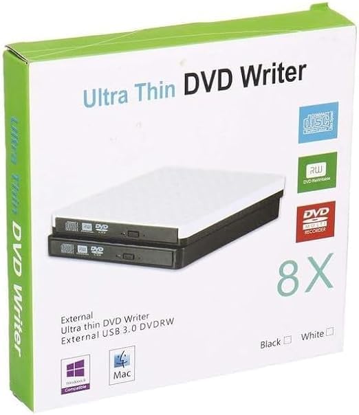 Generic - محرك أقراص DVD خارجي V8 بمدخل USB إصدار 3.0، مشغل أسطوانات ضوئي نحيف CD+RW، ناسخ وقارئ ومسجل للابتوب، وكمبيوتر المكتب، وأنظمة ويندوز 10 و(8 ،7)، وماك بوك، ونظام لينكس، وأجهزة أبل من كينجدودو، أسود