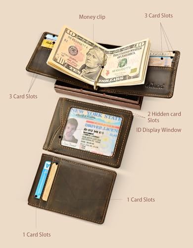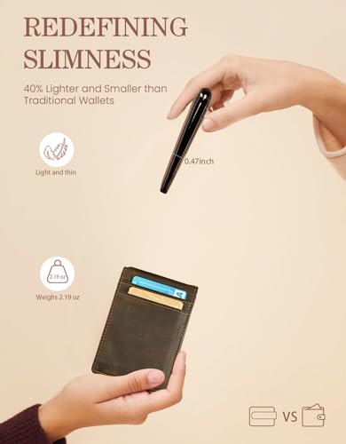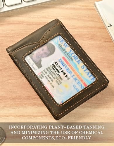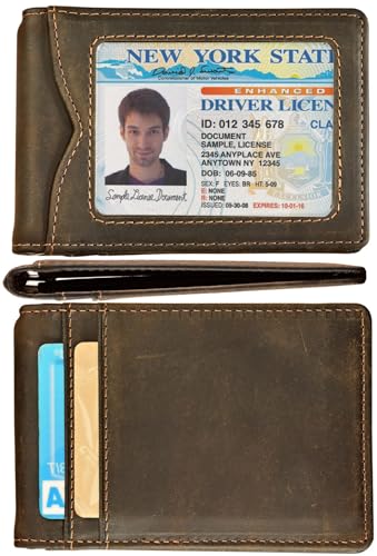 kinzd - محفظة للرجال من الجلد الطبيعي كينزد رفيعة بتصميم بسيط مع مشبك نقود بخاصية حجب تقنية تحديد الهوية بموجات الراديو مطوية وحامل للكروت للجيب الأمامي