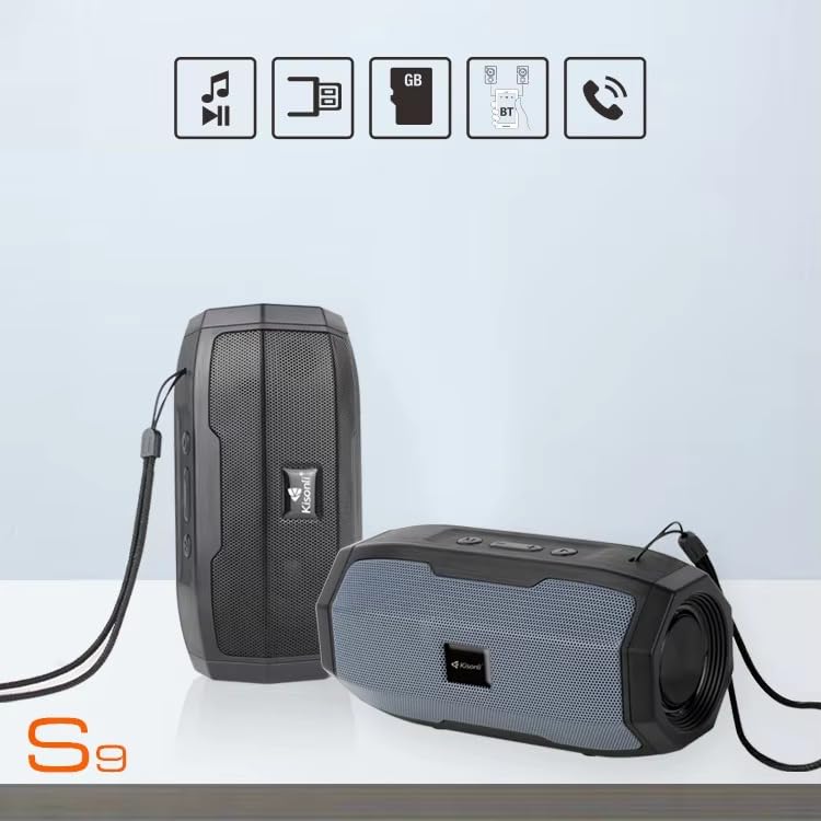 Generic - سماعة بلوتوث محمولة كيسونلي S9 صوت قوي 5 واط بطارية 1200mAh خيارات تشغيل متعددة تصميم مدمج باللون الاسود اسود.