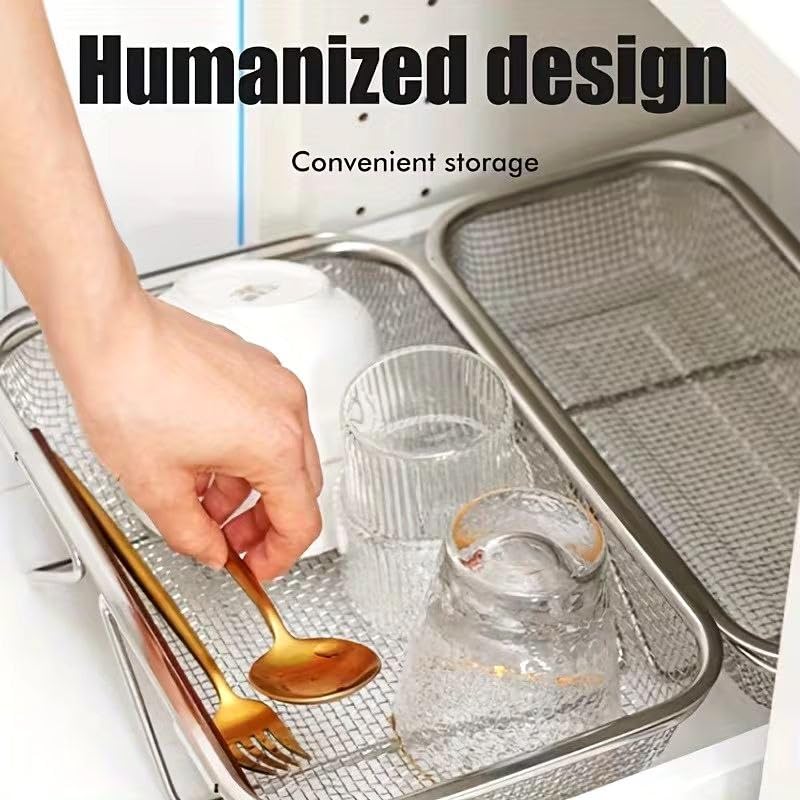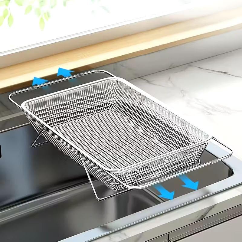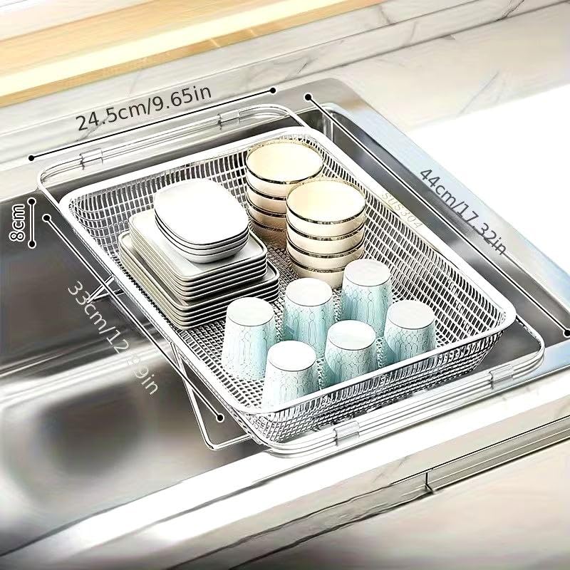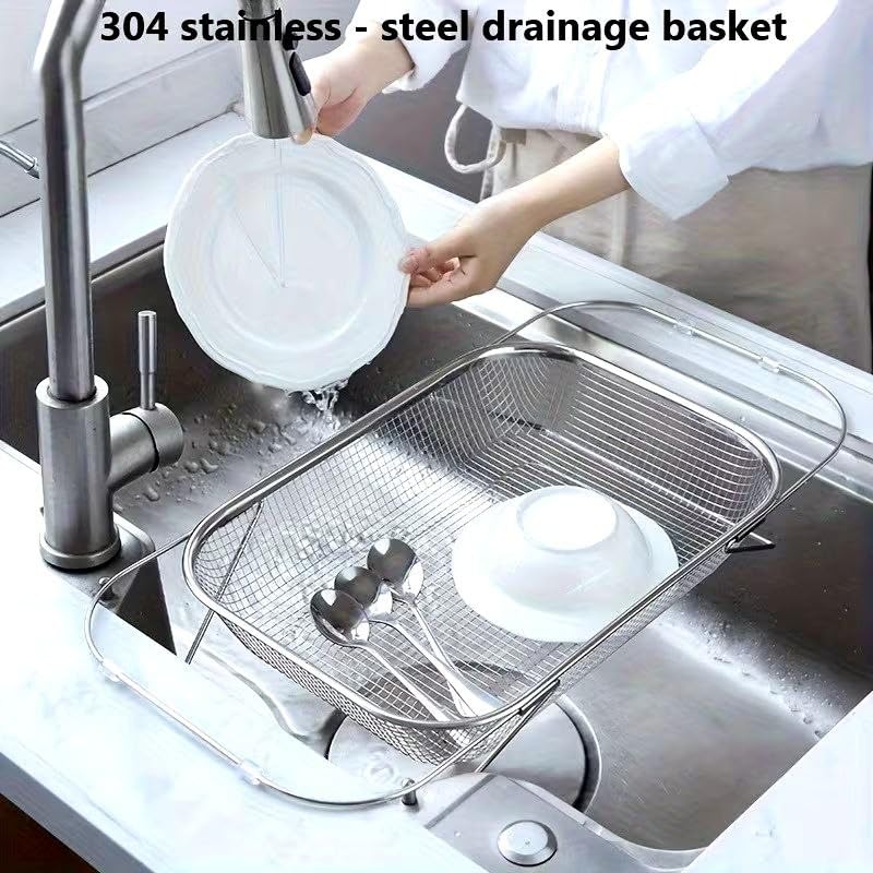 Generic - صفاية مطبخ توضع فوق الحوض من الفولاذ المقاوم للصدأ – سلة تجفيف قابلة للتوسيع مع شبكة لتصريف المياه وغسل الخضروات S