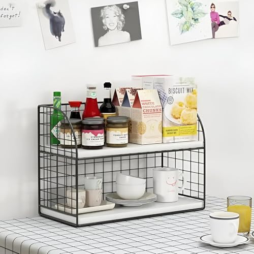 - صمم هذا الرف ذو المستويين بأبعاد 40 × 16 × 25 سم، وهو خفيف الوزن وقوي في نفس الوقت، ويوفر مساحة تخزين واسعة تتناسب بشكل مريح مع معظم أسطح المطبخ، مما يزيد من عمليته وجماله.