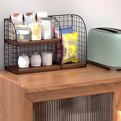- يتميز منظم ملحقات القهوة هذا بتصميم مبتكر من طبقتين يعمل على تحسين المساحة، ما يجعله مثاليًا لطاولات المطبخ أو المكاتب أو مناطق تناول الطعام، مما يوفر مساحة تخزين كافية لمختلف الأغراض دون شغل مساحة كبيرة.
