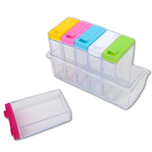 - تتضمن المجموعة ست حاويات مربعة ملونة بشكل جميل مثالية لتخزين مجموعة متنوعة من التوابل. بأبعاد 18 سم × 8 سم × 12 سم، هذه الحاويات صغيرة بما يكفي لتناسب مطبخك مع توفير مساحة تخزين واسعة لجميع احتياجاتك من التوابل.