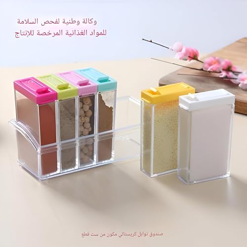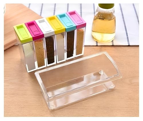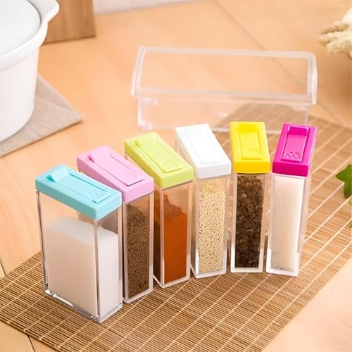 Generic - مجموعة رفوف توابل مكونة من 6 حاويات مع اغطية ملونة، مثالية لتنظيم التوابل وتحسين تحضير الوجبات.
