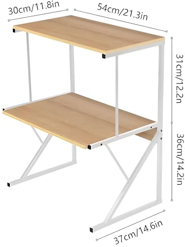 - يعمل رف فرن الميكروويف المكون من طبقتين على تحسين مساحة المطبخ بإطار معدني أنيق وقوي ولمسة نهائية من الخشب الطبيعي الدافئ، مما يوفر تخزينًا عمليًا وجاذبية جمالية، مثالي للمطابخ الصغيرة أو أسطح الطاولات الفوضوية.