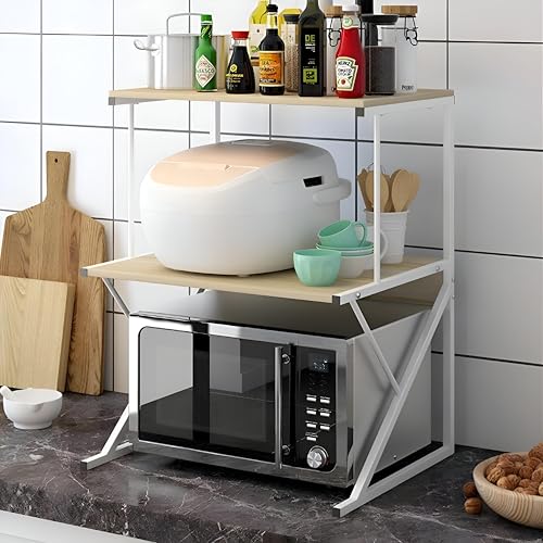 Generic - منظم للمطبخ - حامل رف متعدد الوظائف بتصميم موفر للمساحة للميكروويف والتخزين وسهولة الوصول (ابيض)