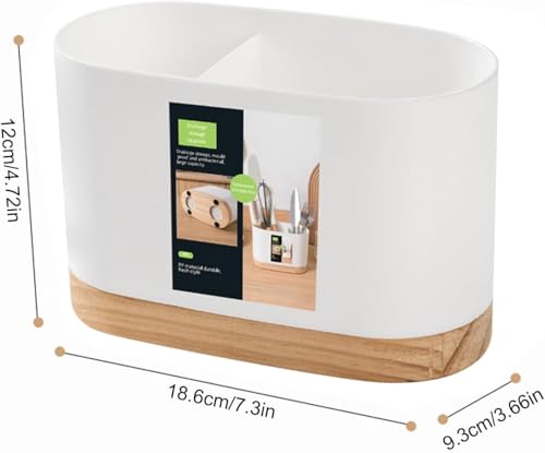 Generic - حامل ادوات المطبخ بقاعدة خشبية، منظم ادوات تناول الطعام مع تصريف، علبة تخزين للشوك والسكاكين والملاعق (ابيض)