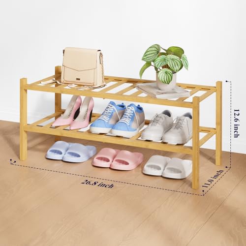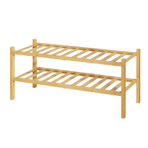 Kitsure - رف أحذية من خشب البامبو للدولاب لترتيب وتنظيم الأحذية قابلة للتكديس والتجميع بهيكل معياري من كيت شور، دولاب بأرفف للأحذية موفرة لمساحة للمدخل وغرفة المعيشة وغرفة النوم من كيت شور، 68.1 × 28 × 32 سم