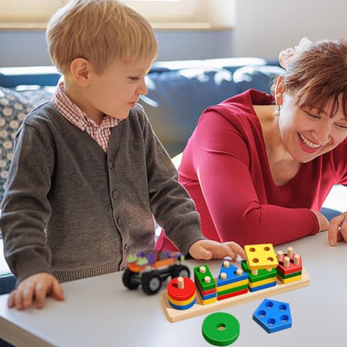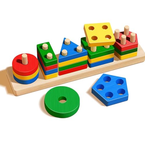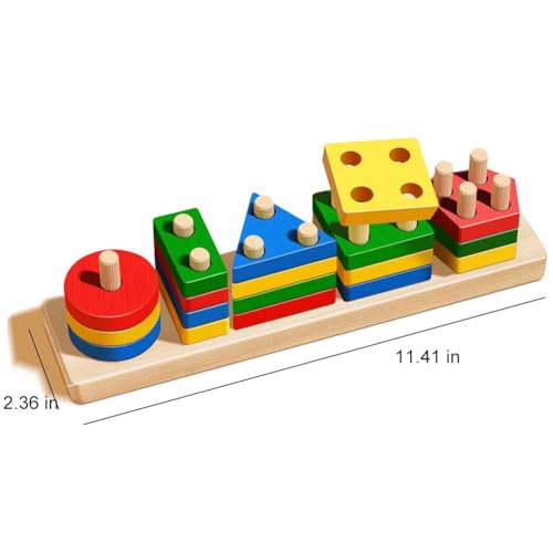 Kiuiom - مكدس احجية الوان واشكال من كيوم، لعبة فرز وتكديس خشبية، احجية مونتيسوري التعليمية المبكرة، مكعبات التعرف على الالوان والاشكال، هدية للاولاد والبنات