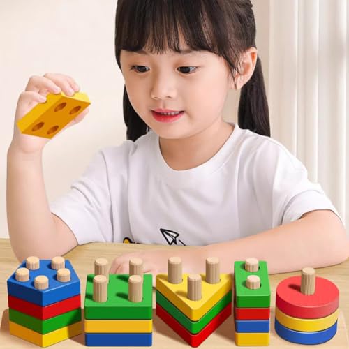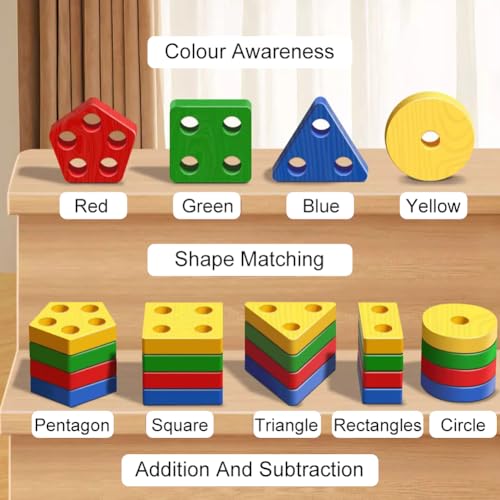 - لعبة مونتيسوريوم: تساعد لعبة الفرز والتكديس الخشبية الأطفال على تطوير مهاراتهم الحركية الدقيقة والعد والفرز بالإضافة إلى التعرف بشكل أفضل على الألوان والأشكال.