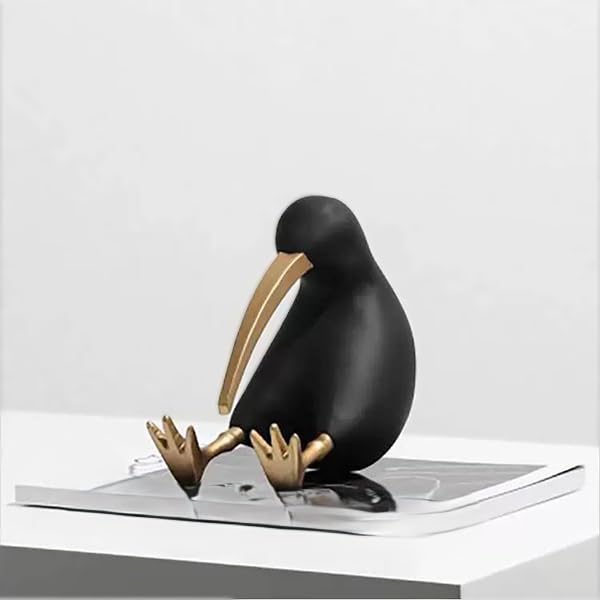 - تصميم مصنوع يدويًا: تمثال طائر كيوي منحوت بشكل جميل يتميز بجسم أسود غير لامع مع منقار ذهبي أنيق ولمسات قدم لديكور المنزل الراقي