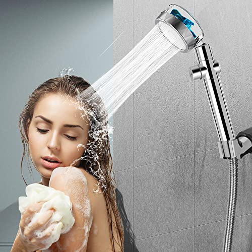 Kiyaosoka - رأس دش محمول باليد، رأس دش عالي الضغط بتصميم مروحة تربو دوارة 360 درجة، رأس دش مائي دوار مع 3 فلاتر، رأس دش توربيني من كياوسوكا (لون أزرق)