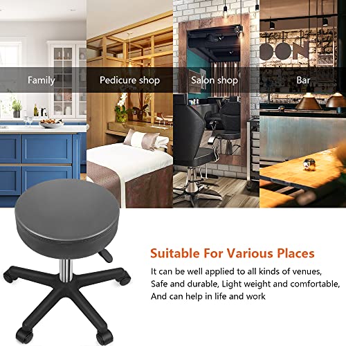 KKTONER - كرسي دوار دائري مصمم من الجلد الصناعي بارتفاع قابل للتعديل وعجلات، مناسب للعمل في المنتجعات الصحية والصالونات الطبية من كيه كيه تونر - رمادي