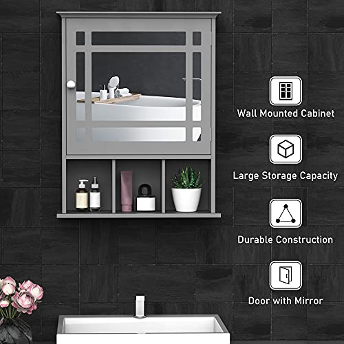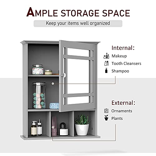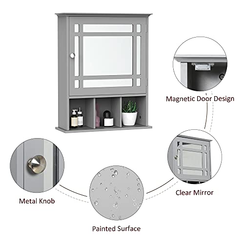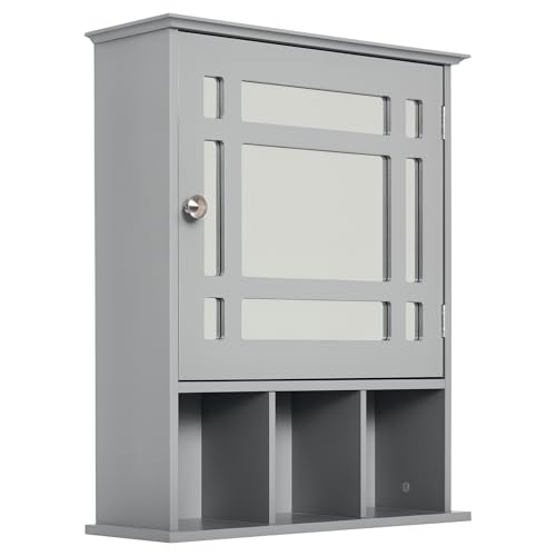 kleankin - دولاب أدوية بمراية يثبت على الحائط، منظم بـ 3 أرفف للمطبخ وغرفة النوم والحمام من كلينكين، رمادي