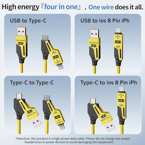 - ️【شحن ونقل بيانات عالي السرعة】استمتع بشحن فائق السرعة مع كيبل البيانات السريع المعدني القابل للتحويل 4 في 1، القادر على توفير ما يصل إلى 65 واط من الطاقة، مما يضمن شحن أجهزتك حتى 50% في 30 دقيقة فقط، استمتع بمزامنة البيانات الفعالة بسرعات مناسبة لنقل الملفات والصور والفيديو بسرعة.