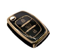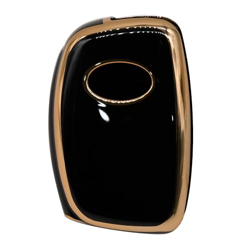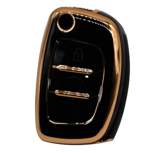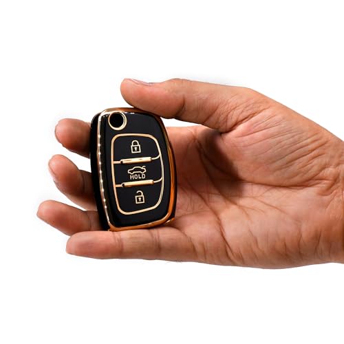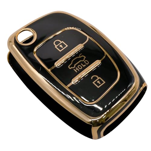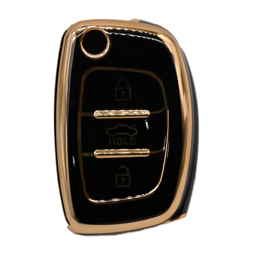 KMH - غطاء مفتاح من البولي يوريثين الحراري بحواف ذهبية كيه ام اتش متوافق مع هونديا كريتا i20 اليت i20 اكتيف فينو اورا جراند i10 نيوس ذكي بثلاثة ازرار عبوة قطعة واحدة اسود