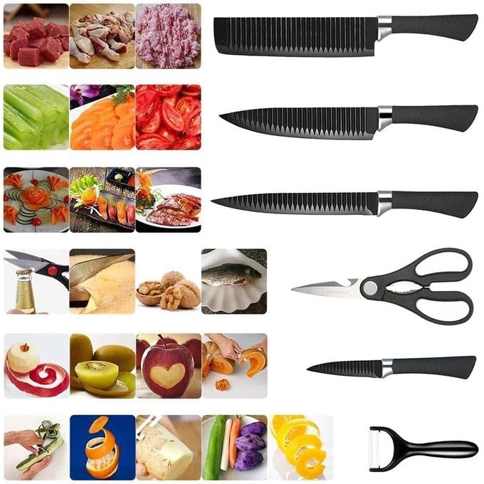 Generic - طقم سكاكين من 6 قطع بلون أسود