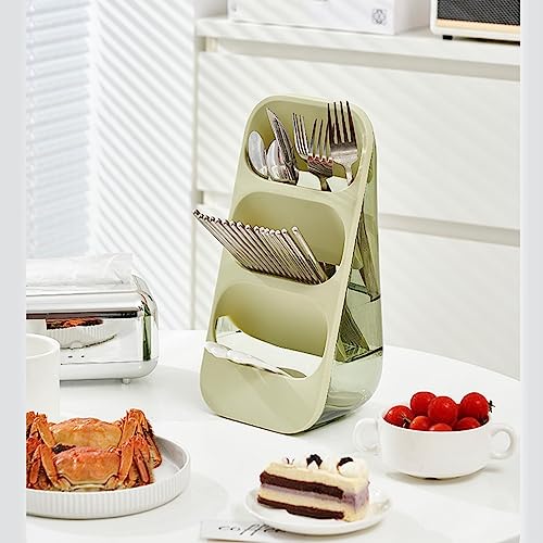 Komost - حامل ادوات المائدة لسطح الطاولة من كوموست منظم اواني لطاولة المطبخ رف تخزين لادوات لعيدان الطعام والمعالق والشوك ومعلقة سباتولا لون اخضر أكريليك