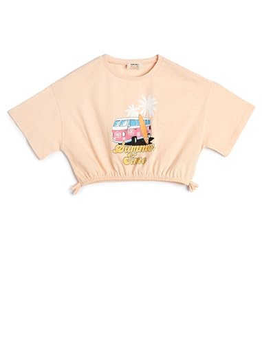 KOTON - KOTON Girls Crop Tropic Printed Elastic Band Short Sleeve Tshirt