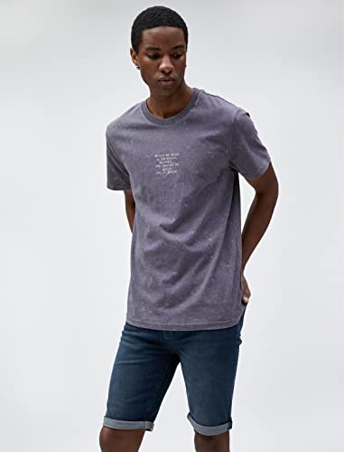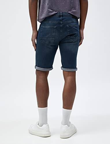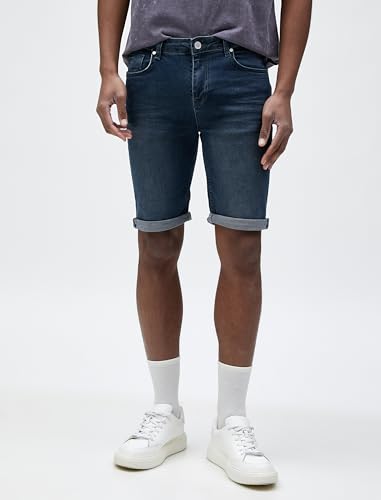 KOTON - شورت برمودا دينيم للرجال بقصة ساق مطوية وأزرار وجيب للرجال من كوتون