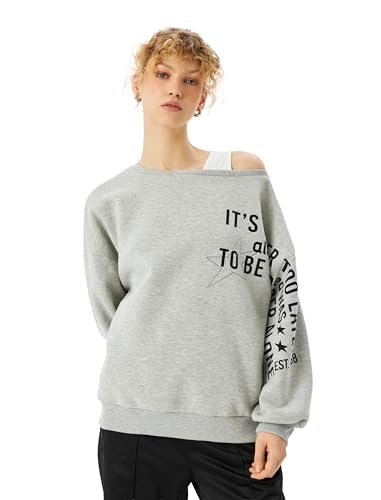 KOTON - كوتون سويت شيرت ريلاكس للنساء، رمادي ميلانج، مقاس L