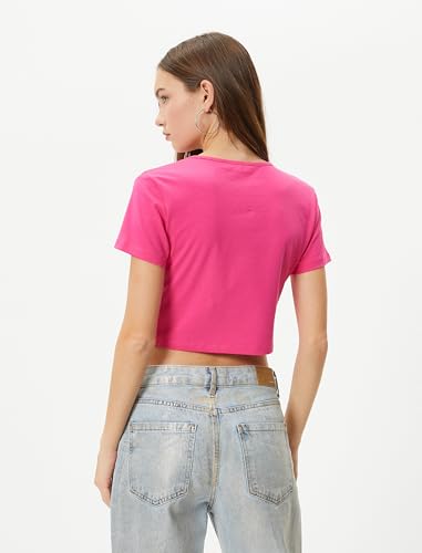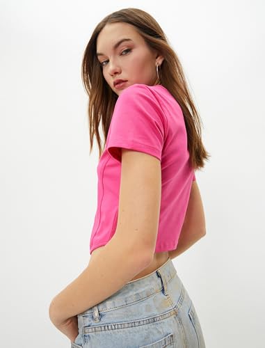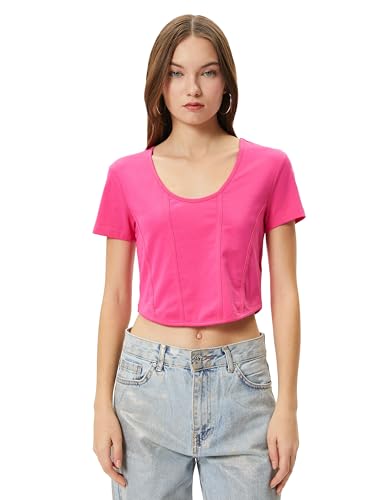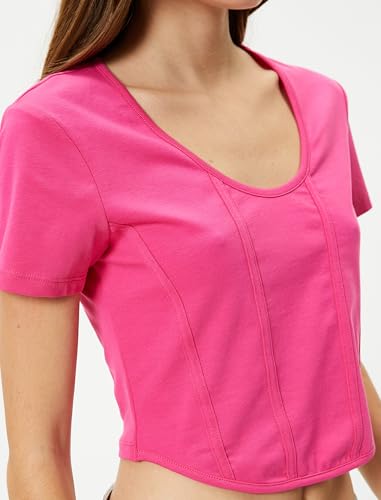 KOTON - تيشرت قطن قصير نصف كم بتصميم كورسيه بقصة ضيقة ورقبة على شكل حرف U للنساء من كوتون (قطعة واحدة)
