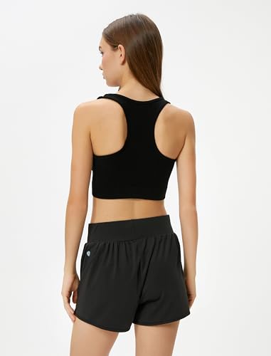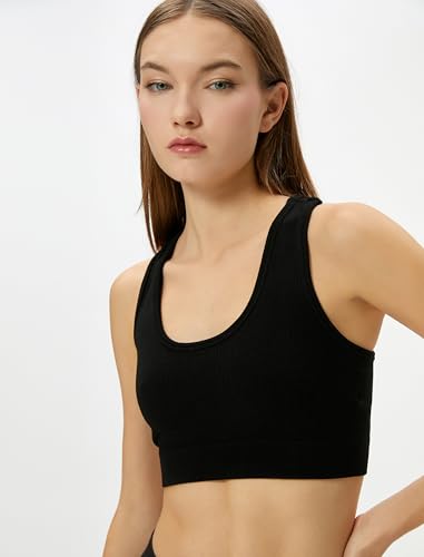 KOTON - حمالة صدر رياضية للنساء بدون خياطة برقبة على شكل حرف U مضلعة بقصة ضيقة من كوتون (عبوة من قطعة واحدة)