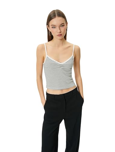 KOTON - توب كات بأشرطة رفيعة ونسيج مضلع مع تفاصيل ثنيات منسدلة ومزيج فسكوز عصري للنساء من كوتون (عبوة من قطعة واحدة)