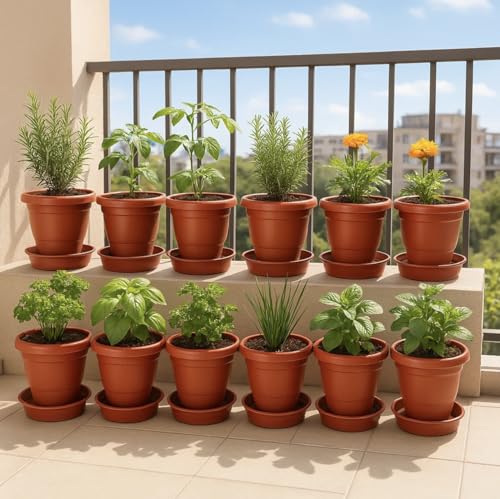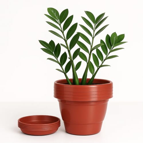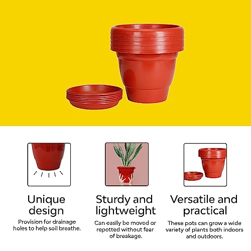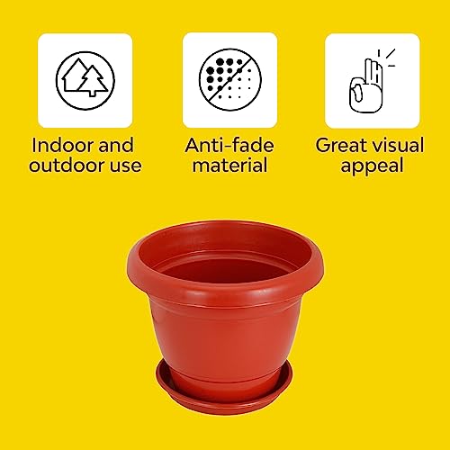 Kraft Seeds - وعاء نباتات بلاستيك مع طبق سفلي من كرافت سيدز - عبوة 4 قطع 19 سم لون أحمر | أوعية ملونة ترابية فتحة تصريف صواني سفلية لمنع الانسكاب | زهور للنباتات صينية