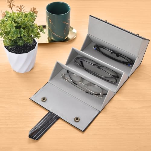 Kuber Industries - كوبر اندستريز منظم نظارات شمسية بـ 5 فتحات | حافظة نظارات قابلة للتعليق والطي | حاويات عرض النظارات للنساء والرجال | صندوق منظم نظارات من الجلد الصناعي | اسود