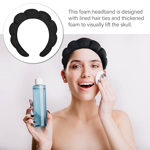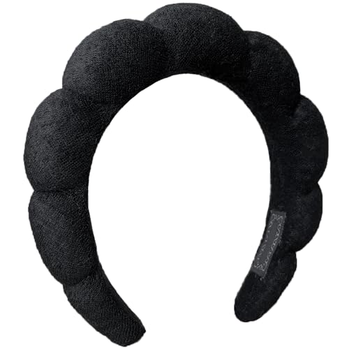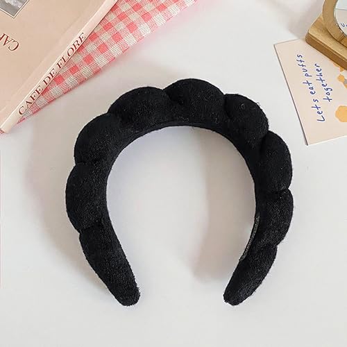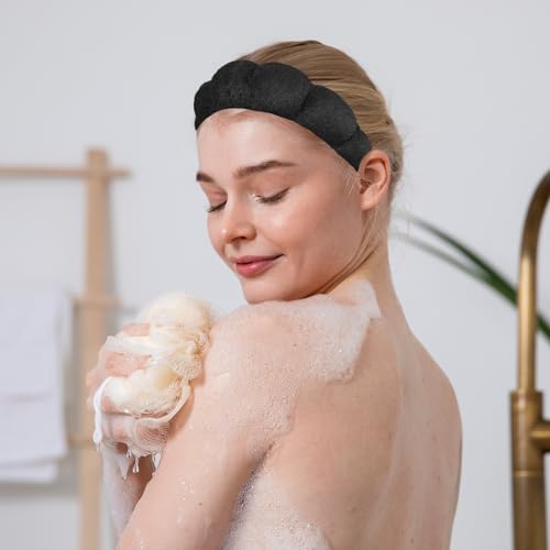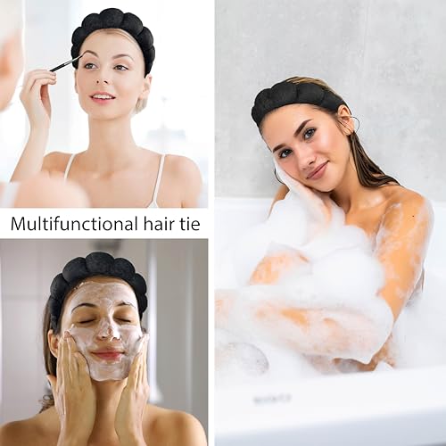 KWQINX - مجموعة عصابة راس وسوار معصم لغسل الوجه من كيه دبليو كيو اي ان اكس، عصابة راس ناعمة للعناية بالبشرة والشعر والمعصم لغسل الوجه، عصابة راس ناعمة للعناية بالبشرة للنساء (اسود)