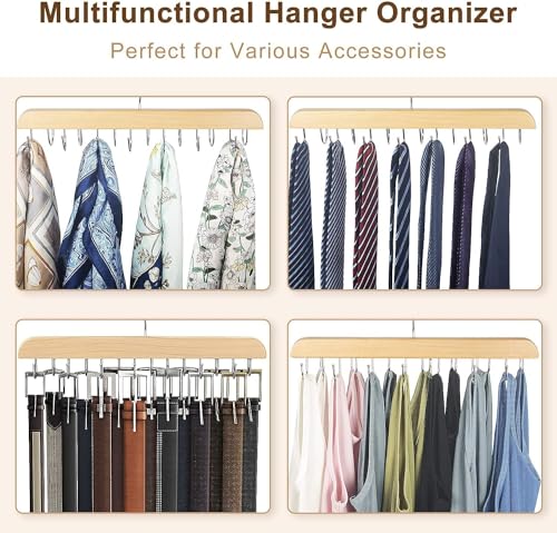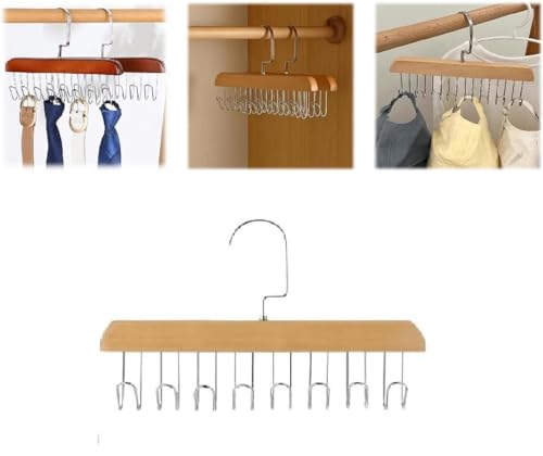 KYTRONIC - شماعة خشبية لرف تعليق الملابس، وإكسسوارات خزانة الملابس الداخلية متعددة الخطافات، والأحزمة، والأوشحة العلوية، وحمالات الصدر وربطات العنق، وشماعة تخزين موفرة للمساحة لخزانة الملابس والخزانة (8 خطافات)