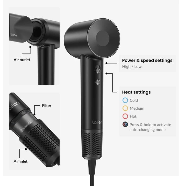 Laifen - مجفف شعر مع خاصية التأين سويفت سبيشال من لايفين (أسود)