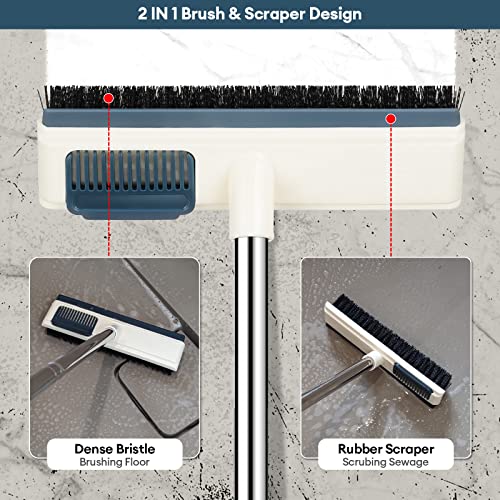 Lalafancy - فرشاة لتنظيف البلاط والارضيات بمقبض طويل من لالافانسي، فرشاة بسطح 44 بوصة مع مشط باسنان ومساحة مطاطية، فرشاة ارضيات 2 في 1 للجراج وحوض السباحة والفناء والمطبخ