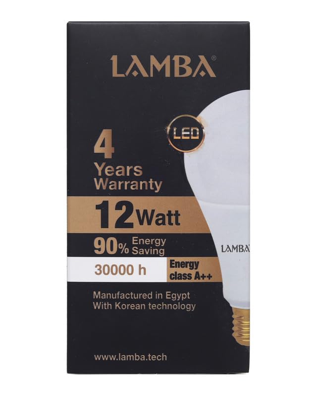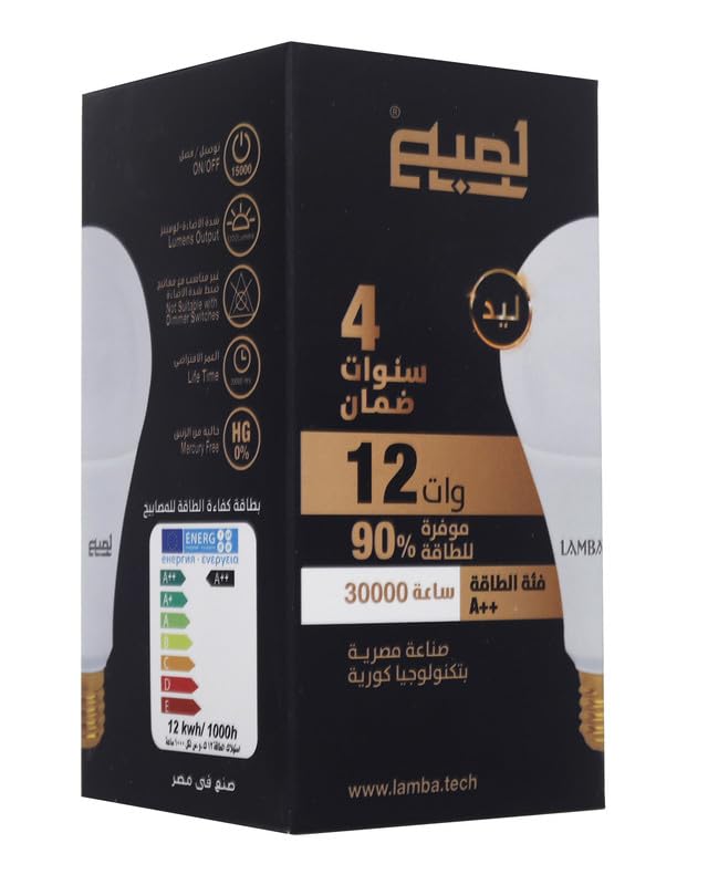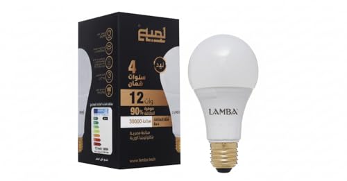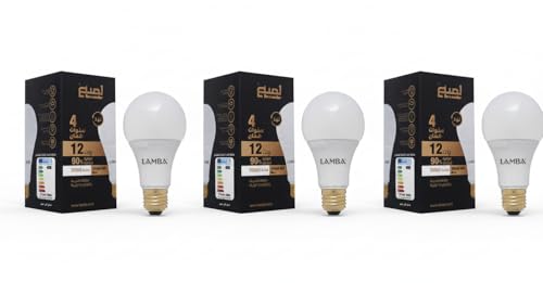 LAMBA - مجموعة لمبات ليد 12 وات A65 من LAMBAموفرة للطاقة بنسبة 90%، عمر افتراضي 30,000 ساعة، كفاءة A++، بضوء ساطع ( 3 قطع) ، ابيض