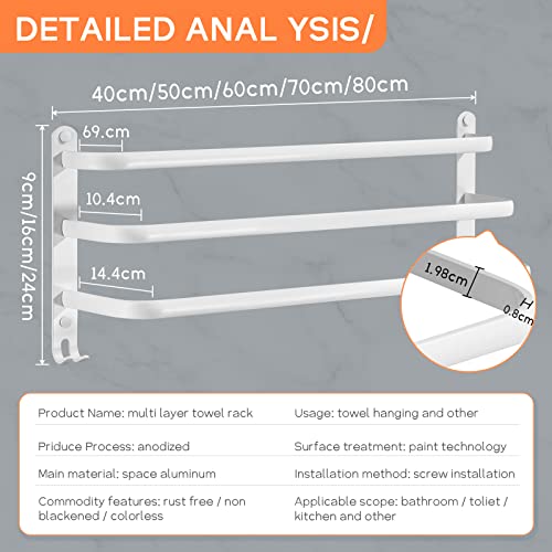 LANPOWAE - حامل فوط ألومنيوم ذاتي اللصق من 3 طوابق مزود بخطافات، تركيب دون ثقب، مقاوم للماء والغبار للحمام والمطبخ من لانباو، لون أبيض وأسود
