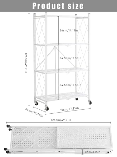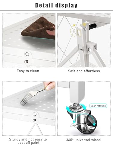 Lanstics - لانزتيكس وحدة رفوف قابلة للطي من 4 طبقات ارفف شديدة التحمل مع عجلات معدنية قائمة للمنزل والمطبخ وغرفة المعيشة مغطى بالمسحوق أبيض