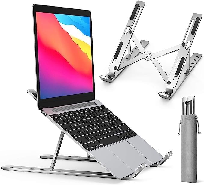 - قابل للطي وتعديل الارتفاع: يتيح لك تعديل ارتفاع الحامل بسهولة لتحقيق وضعية مريحة أثناء استخدام اللاب توب.
