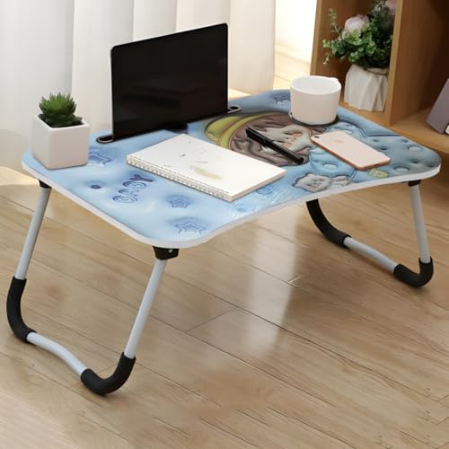 Generic - طاولة لاب توب للأطفال مكتب سرير قابل للطي مع حامل كوب وفتحة للتابلت طاولة دراسة محمولة للرسم والكتابة والقراءة مكتب خفيف الوزن للاستخدام في المنزل أو المدرسة أو أثناء السفر، أزرق 3
