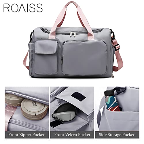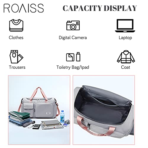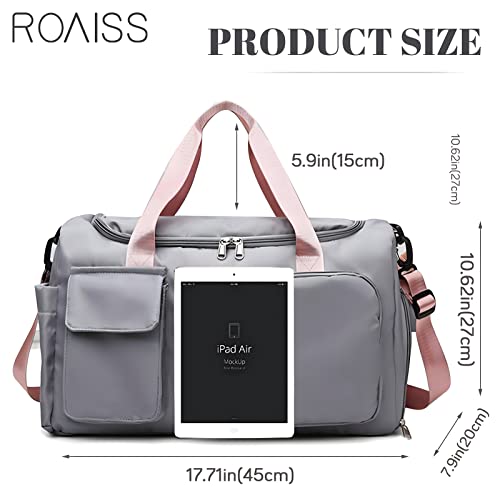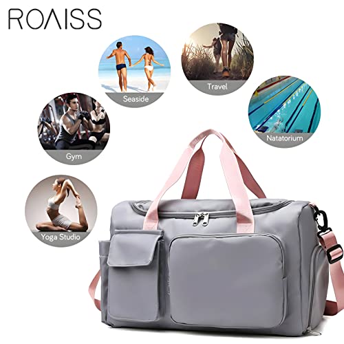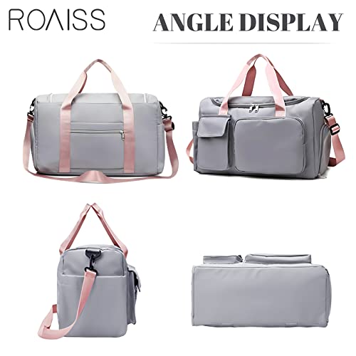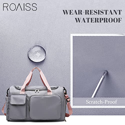 ROAISS - شنطة يدوية كبيرة مقاومة للماء بسعة كبيرة، للجنسين، مناسبة للسفر والرياضة, رمادي، قماش