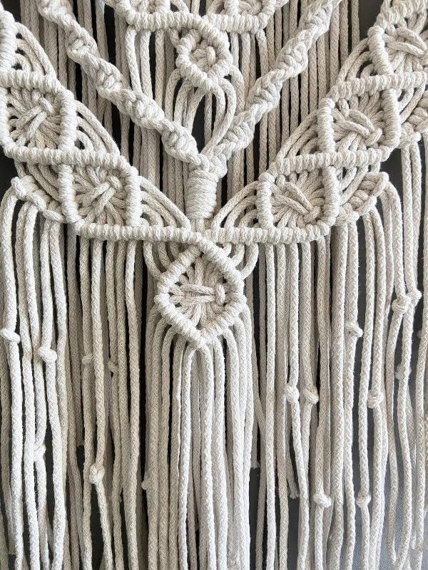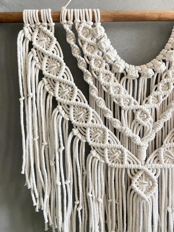 - نسيج مكرمية بوهيمي منسوج يدويًا هو ديكور حائط بسيط على الطراز الاسكندنافي، يضيف لمسة من الفن اليدوي إلى غرفة معيشتك. شريط مكرمية للتعليق على الحائط سهل التركيب ويحتوي على حبل حتى تتمكن من تعليقه في أي وضع. إذا لم يكن هناك خطاف، فقد تحتاج إلى لصق الخطافات.