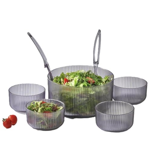 Generic - مجموعة اوعية كبيرة للسلطة والفاكهة - مجموعة اوعية تقديم مكونة من 5 قطع مع ملعقة وشوكة متطابقة - اوعية مطبخ متعددة الاغراض للخلط والتقديم والترفيه - ادوات مائدة متينة وامنة للطعام (رمادي شفاف)