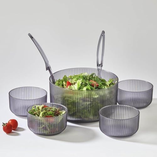 Generic - طقم بولات كبيرة للفاكهة وللسلطة (طقم من 5 بولات وملعقة وشوكة)، لون رمادي شفاف