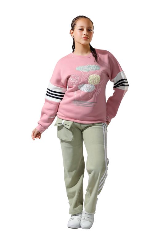 LARK ART - سويت شيرت بأكمام طويلة وبنطلون ميلتون قطن للبنات من لارك ارت