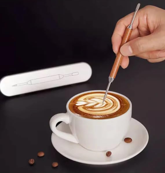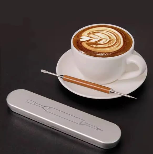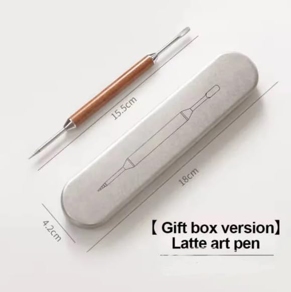Generic - قلم فن اللاتيه مع صندوق هدايا، مقبض خشبي، اطراف مزدوجة من الستانلس ستيل، اداة تزيين القهوة، 15.5 سم