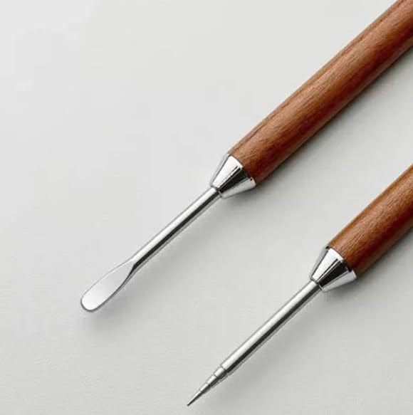 - تصميم ذو طرف مزدوج: يتميز بطرفين دقيقين من الستانلس ستيل - نقطة إبرة واحدة للتفاصيل المعقدة وطرف ملعقة واحدة لضربات أوسع، مما يسمح لك بابتكار أنماط وتصميمات احترافية لفن اللاتيه