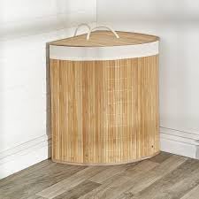 Generic - سلة زاوية مثلثة قابلة للطي مع غطاء، منسوجة من الخشب الطبيعي الريفي، مصممة للملابس لغرفة النوم والحمام وتنظيم منطقة الغسيل